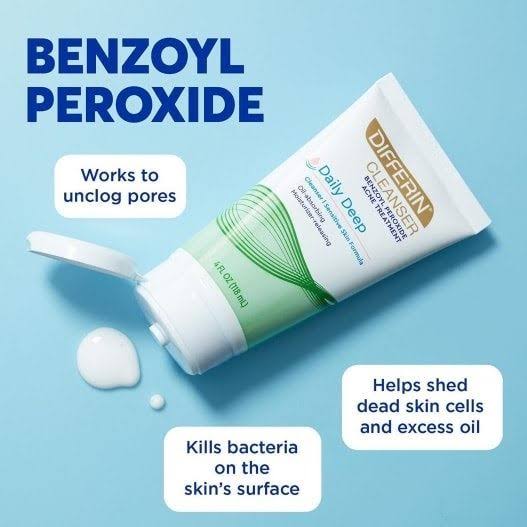 Differin® Daily Deep Cleanser offers the power of maximum strength benzoyl peroxide but with less irritation and redness.