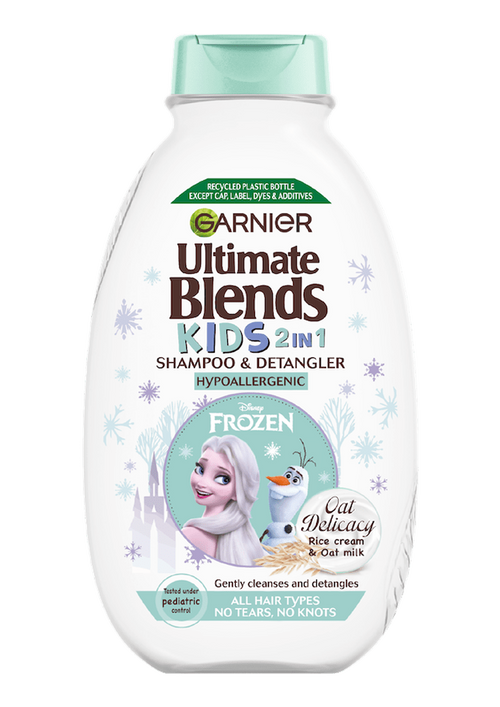 Garnier Ultimate Blends Kids Shampoo for delicate hair. Our 2in1 Kids Shampoo gently cleanses and detangles. Your children’s hair looks super-soft, shiny & tangle-free! Tested under paediatric & ophthalmologist control. Our hypoallergenic formula doesn’t sting the eyes and will gently remove knots and tangles, caring for the delicate nature of your children’s hair.