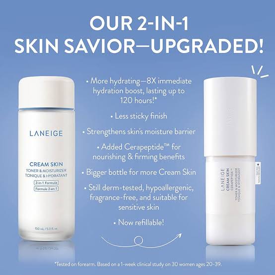 Here comes the 2nd generation Cream Skin, which is more moist-ful with the Cerapeptide™. Miraculous skin fortifier, deep hydration repairs and strengthens skin barrier! LANEIGE Cream Skin Cerapeptide™ Refiner leaves your skin moisturised at the first step of your skin care routine.